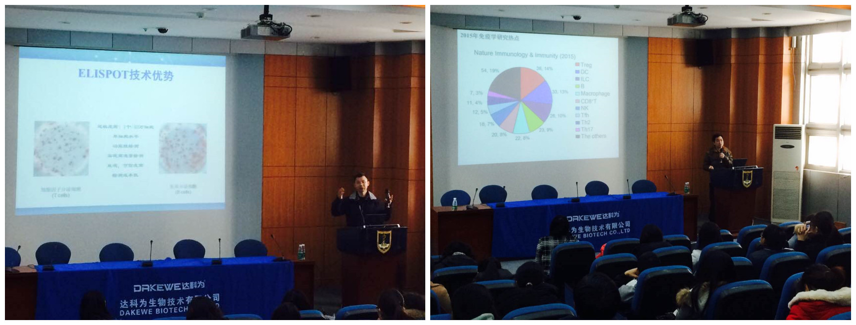 1月8日上午九點,第二天的理論課程開始了。首先是達科為生物工程中心周翔經(jīng)理作報告。周翔經(jīng)理講述了ELISPOT的原理、刺激劑的選擇、斑點結(jié)果判定以及ELISPOT的應(yīng)用等。