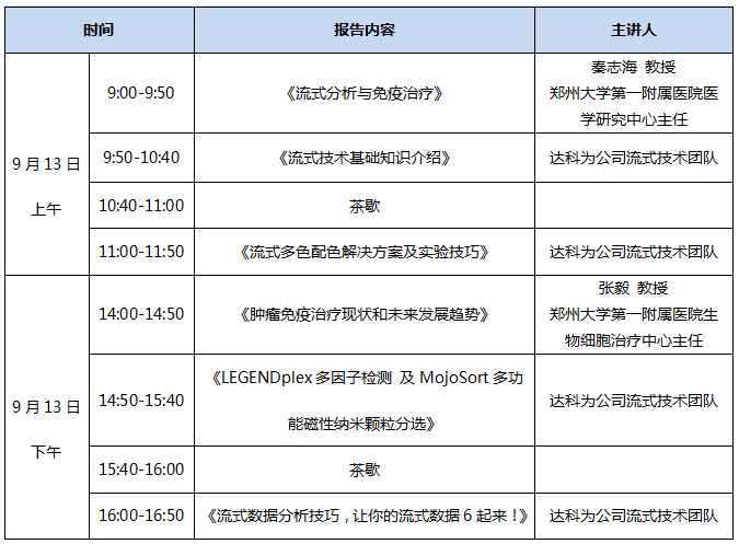 金秋九月,達科為流式培訓(xùn)班要來鄭州啦,名師講解,理論與實驗雙管齊下,輕松完成流式八色檢測分析,更有LEGENDplexTM多因子Demo演示,磁珠分選Demo以及De Novo 流式軟件數(shù)據(jù)分析演示。流式上機名額有限,歡迎踴躍報名!理論培訓(xùn)和實驗操作均免費喲!