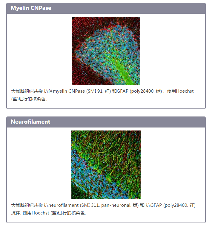 SMI?克隆號系列抗體是BioLegend 旗下品牌 Covance非常重要而知名的產(chǎn)品線,被業(yè)內(nèi)譽為研究神經(jīng)細(xì)胞特異marker的金標(biāo)準(zhǔn)。