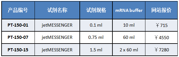 Table 1 jetMESSENGER?可在各種細胞類型中獲得高轉(zhuǎn)染效率