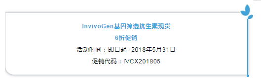 達科為生物是InvivoGen公司在中國的一級代理,并且和InvivoGen一直都有良好的合作,達科為準備了大量InvivoGen篩選抗生素現(xiàn)貨,即日起篩選抗生素下列現(xiàn)貨參加6折促銷活動: