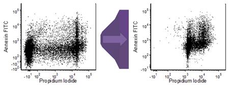 流式細(xì)胞分析時(shí),樣本細(xì)胞中一般都含有一定量的死細(xì)胞,通過(guò)一定的方法可以減少樣本中死細(xì)胞的比例,但是完全去除樣本中的死細(xì)胞幾乎是不可能的。但流式分析的目標(biāo)為活細(xì)胞,因此流式分析時(shí)將死細(xì)胞當(dāng)作活細(xì)胞來(lái)分析,會(huì)嚴(yán)重影響流式分析的結(jié)果,通??梢赃x擇熒光染料來(lái)標(biāo)記區(qū)分死活細(xì)胞的方法,下面介紹一些流式分析時(shí)區(qū)分死細(xì)胞和活細(xì)胞的簡(jiǎn)單方法。