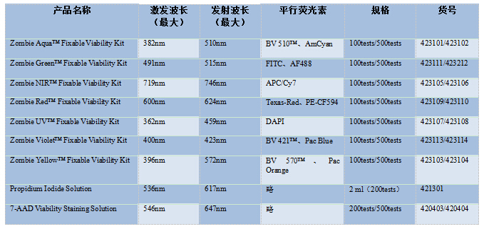 當(dāng)流式檢測(cè)只分析細(xì)胞表面抗原分子,且不對(duì)樣本固定時(shí),7-AAD和PI是比較理想和經(jīng)典的方法。但是如果需要分析細(xì)胞內(nèi)的分子,如檢測(cè)胞內(nèi)細(xì)胞因子、胞內(nèi)活化的激酶和核內(nèi)分子等需要固定樣本細(xì)胞,在胞膜上打孔,使熒光素偶聯(lián)抗體能夠通過(guò)細(xì)胞膜進(jìn)入細(xì)胞內(nèi),與相應(yīng)目標(biāo)分子結(jié)合,這時(shí)7-AAD與PI就無(wú)法鑒別死細(xì)胞和活細(xì)胞了。