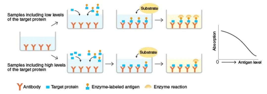 1、樣本中分析物水平較低可以使用哪些方法改進(jìn)檢測(cè)?通過(guò)增加洗滌次數(shù)和兩次洗滌之間的浸泡時(shí)間降低背景。控制測(cè)定精確度。例如,在移液時(shí)要更加小心和一致,使用干凈的紙巾拍板,以避免污染。增加孵育時(shí)間。但這通常也會(huì)增加背景,因此檢測(cè)靈敏度不一定會(huì)增加。如果可以的話,建議濃縮樣本。使用5-PL曲線擬合方法,更準(zhǔn)確地計(jì)算標(biāo)準(zhǔn)曲線下端的樣本濃度。在大多數(shù)情況下,樣本可能只含有非常低或無(wú)法檢測(cè)到的分析物水平。這時(shí)無(wú)論如何操作和測(cè)定,仍然無(wú)法檢測(cè)到準(zhǔn)確濃度。2、包板應(yīng)如何存放?如果包被完抗體的板不能立即使用,應(yīng)將其密封并在4°C儲(chǔ)存過(guò)夜。3、為什么使用同一克隆號(hào)的捕獲抗體和檢測(cè)抗體建立ELISA實(shí)驗(yàn)沒(méi)有成功?如果使用相同的克隆抗體進(jìn)行檢測(cè)和捕獲,則抗原表位可能已經(jīng)被其中一種抗體占據(jù)并抑制另一抗體結(jié)合。建議捕獲和檢測(cè)抗體選擇不同的克隆號(hào)。4、應(yīng)該使用哪種包被緩沖液?一般來(lái)說(shuō),建議使用PBS(pH 7.4)或碳酸鹽緩沖液(pH 9.5)。確切的包被緩沖液可能取決于要檢測(cè)的細(xì)胞因子。5、為什么細(xì)胞因子流式染色與ELISA測(cè)定之間沒(méi)有良好的相關(guān)性?流式細(xì)胞術(shù)檢測(cè)的胞內(nèi)細(xì)胞因子代表檢測(cè)時(shí)的陽(yáng)性細(xì)胞比例,ELISA代表細(xì)胞因子隨時(shí)間的積累量??赡苌倭康年?yáng)性細(xì)胞在一段時(shí)間之后會(huì)分泌大量的細(xì)胞因子于培養(yǎng)上清中,導(dǎo)致ELISA的結(jié)果與胞內(nèi)因子染色的結(jié)果不一致6、可以使用細(xì)胞培養(yǎng)板進(jìn)行ELISA實(shí)驗(yàn)嗎?不可以。細(xì)胞培養(yǎng)板設(shè)計(jì)用于達(dá)到細(xì)胞培養(yǎng)目的,通常不具有高蛋白結(jié)合能力。對(duì)于ELISA,建議使用具有高蛋白結(jié)合能力的板,例如 Nunc Maxisorp?酶標(biāo)板。7、血清等樣本可以重復(fù)使用嗎?不建議重復(fù)使用樣本。為了獲得準(zhǔn)確的結(jié)果,樣本應(yīng)分裝儲(chǔ)存,僅供一次性使用。如果重復(fù)使用樣本,需要進(jìn)行額外的驗(yàn)證實(shí)驗(yàn),以確保實(shí)驗(yàn)準(zhǔn)確性。8、在什么步驟中,可以暫停ELISA實(shí)驗(yàn)?可以冷凍板子以備后用嗎?最好遵循說(shuō)明書(shū)操作,沒(méi)有任何可以暫停實(shí)驗(yàn)的步驟。但是,如果一定需要暫停實(shí)驗(yàn),建議在封閉步驟(包被捕獲抗體后)??梢栽诳字屑尤?00 μL封閉緩沖液,并將板在4°C過(guò)夜(信號(hào)損失最小或沒(méi)有)或在-20°C冷凍幾天(可能會(huì)對(duì)信號(hào)產(chǎn)生一些影響)。不建議在第一步進(jìn)行(在4°C用捕獲抗體包被超過(guò)16-20小時(shí)),因?yàn)榭赡軙?huì)導(dǎo)致高背景。9、包被捕獲抗體可以超過(guò)過(guò)夜的時(shí)間嗎?通常來(lái)說(shuō),建議在4°C包被16-20小時(shí)。較長(zhǎng)的孵育時(shí)間可能會(huì)增加與板結(jié)合的捕獲抗體量,會(huì)增加背景。10、培養(yǎng)基中的酚紅會(huì)干擾ELISA測(cè)定嗎?不會(huì),培養(yǎng)基中酚紅的吸光度可以在計(jì)算時(shí),通過(guò)扣除空白孔中本底的吸光度而消去,因此不會(huì)干擾ELISA測(cè)定的讀數(shù)。11、對(duì)于一些ELISA試劑盒,為什么血清樣本需要稀釋?血清樣本稀釋可以盡量減少樣本和標(biāo)準(zhǔn)品之間的基質(zhì)差異,以獲得更加準(zhǔn)確的結(jié)果。12、如何提高ELISA檢測(cè)獲得更好的信號(hào)和靈敏度?增加孵育時(shí)間,但這也可能會(huì)增加檢測(cè)的背景,同時(shí)不改變靈敏度。在孵育步驟中搖動(dòng)板子。確保標(biāo)準(zhǔn)品在使用前完全溶解。在兩次洗滌之間增加浸泡時(shí)間,以進(jìn)一步降低背景。如果可以的話,在450-570 nm處讀板以減去本底。通過(guò)控制移液誤差或使用更大體積的洗滌緩沖液洗滌來(lái)改善CV值。使用5-PL或4-PL曲線擬合方法,而不是線性曲線擬合。