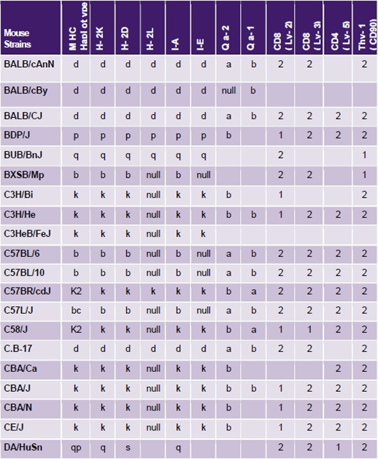 實驗室常用小鼠單倍型及同種異型抗原